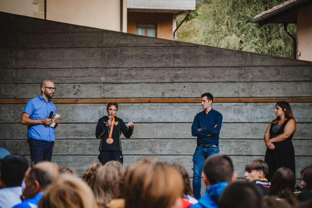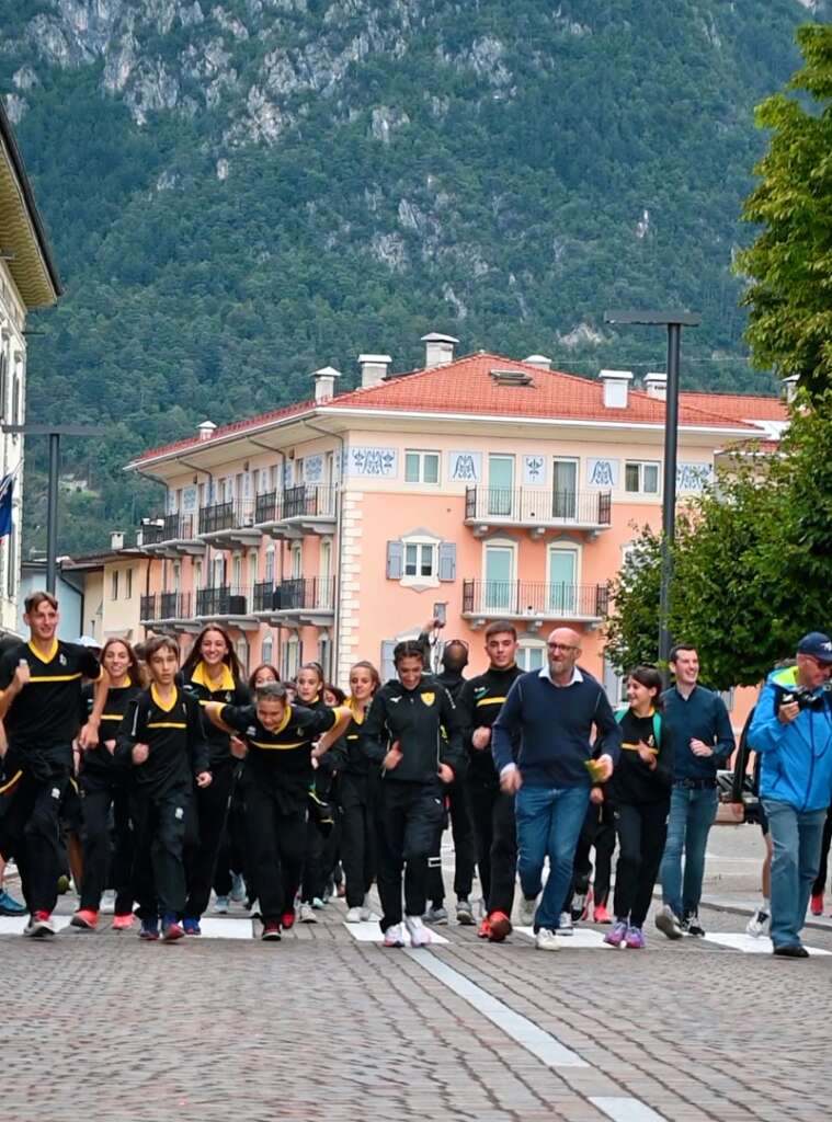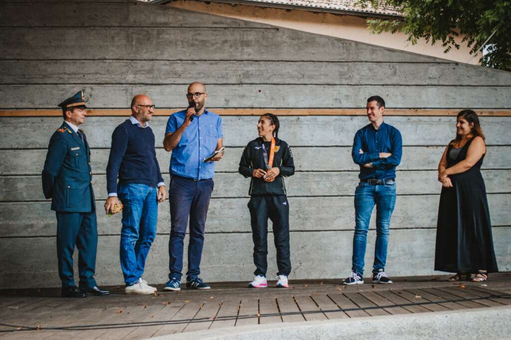 La campionessa olimpica e bronzo mondiale nella 20 km di marcia Antonella Palmisano ha celebrato il podio di Budapest a Tione di Trento, coinvolgendo i giovani delle Fiamme Gialle in un’esibizione di marcia per le vie della città.