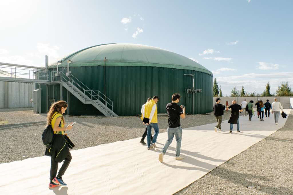 - siamo andati in e-bike per seguire il percorso off-road del tubo sotterraneo che fornisce acqua calda allo stabilimento e mette in atto un processo di riciclo riutilizzandola alla fine delle fasi di produzione.